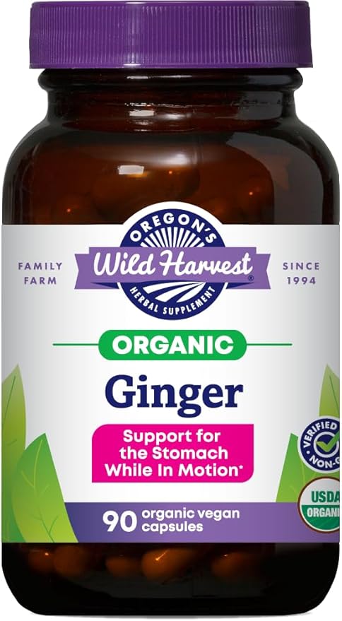 Oregon's Wild Harvest, Certified Organic Ginger Capsules for Stomach Support, Non-GMO, 1000 MGS, 90 Count