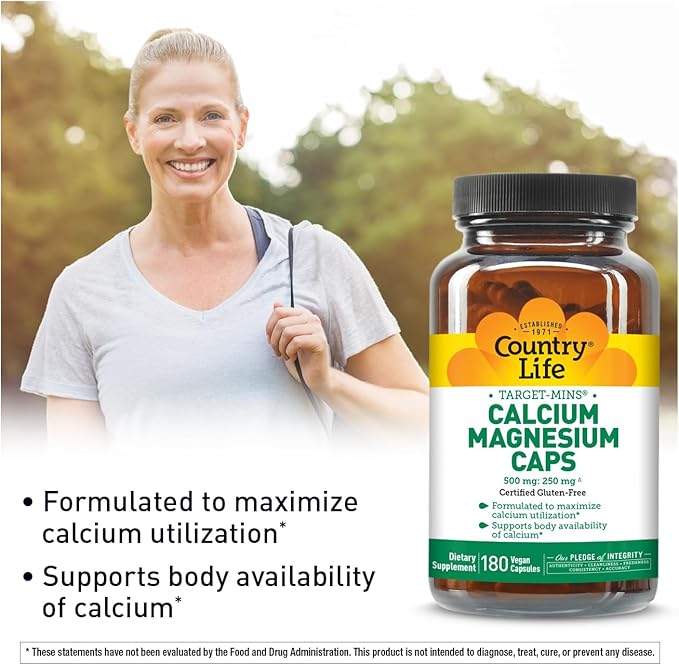 Country Life Target-Mins Calcium Magnesium Complex - 1000mg Calcium, 500mg Magnesium, Gluten-Free Supplement for Bone Health