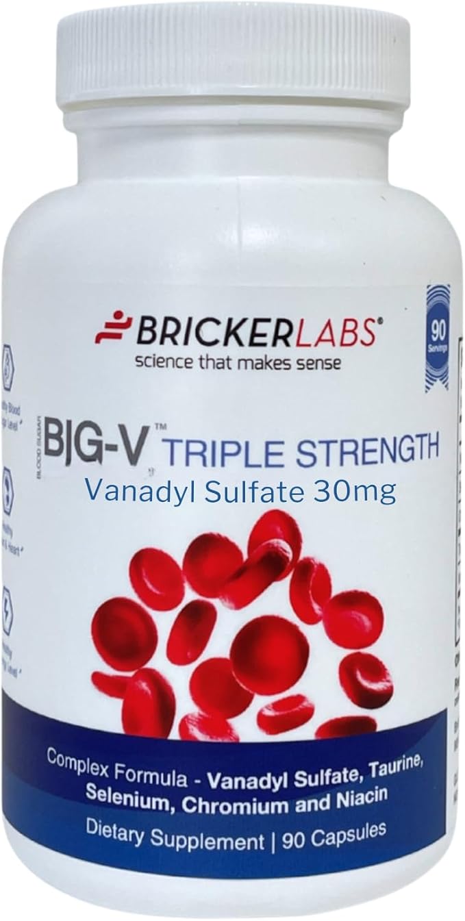 Big-V Triple Strength Vanadyl Supplement: Vanadyl Sulfate 30 mg, Taurine 600 mg, Selenium, Chromium and Niacin, Blended Mineral Supplement Capsules 90 ct