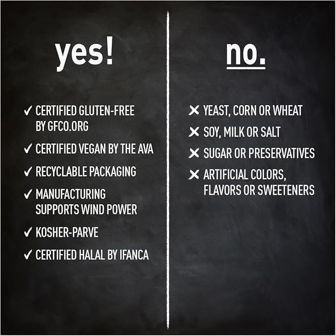 - Certified - Certified Gluten Free by GFCO, Certified Vegan by AVA, Certified Halal by IFANCA