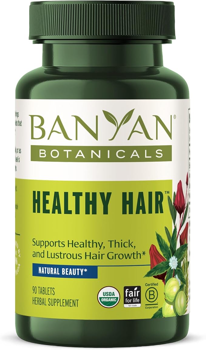Banyan Botanicals Healthy Hair Tablets – Organic Hair Supplement with Amla & Bhringaraj – Ayurvedic Hair Care for Healthy, Thick & Lustrous Hair* – 90 Tablets – Non GMO Sustainably Sourced Vegan