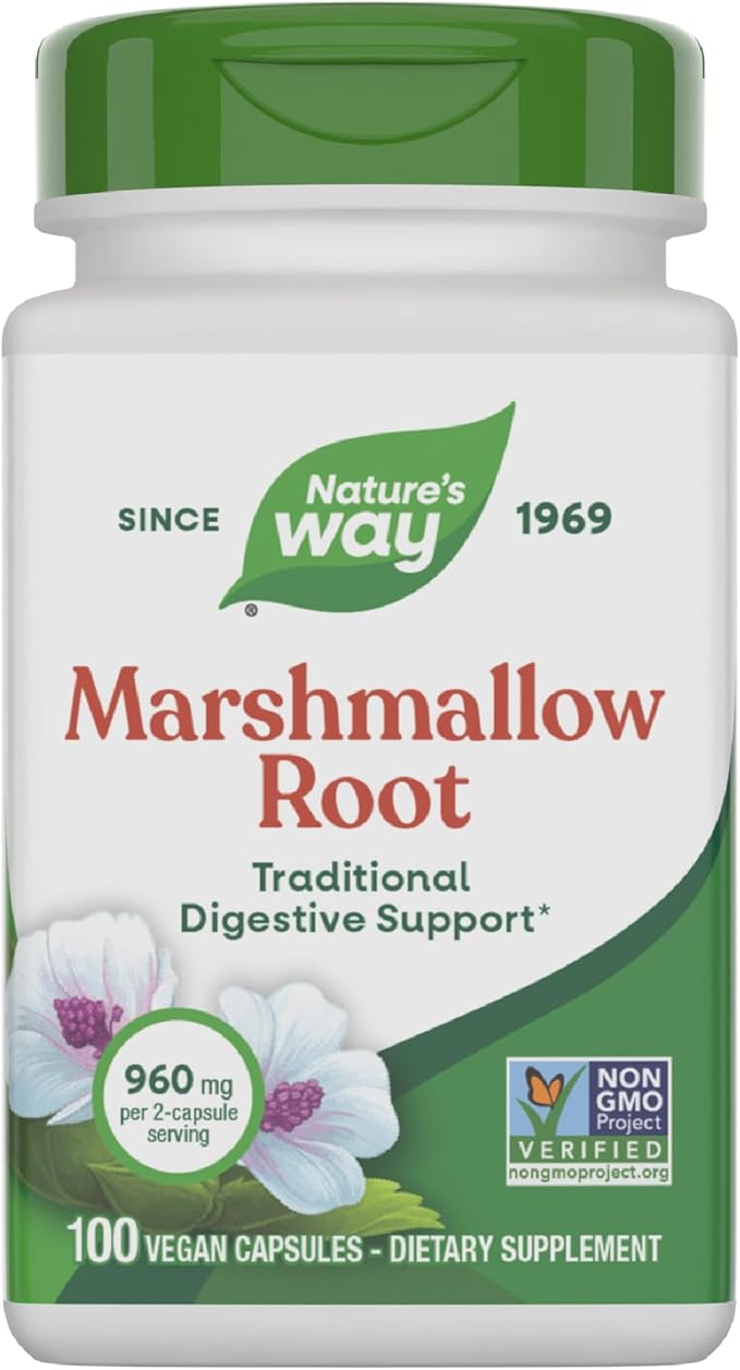 - Traditional Digestive Soother Capsules*: Nature's Way Marshmallow Root is a plant-based traditional soothing digestive herbal supplement*
