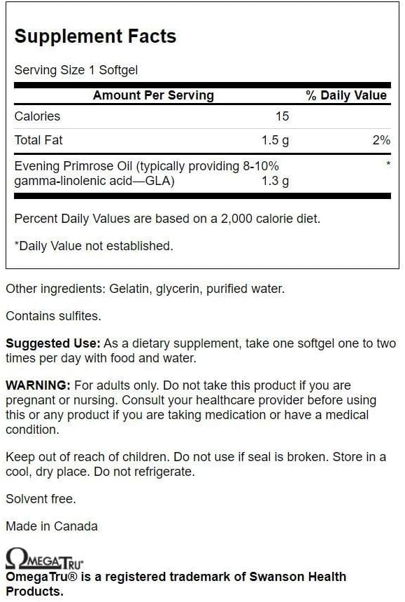 Swanson Evening Primrose Oil (Omegatru) 1300 Milligrams 100 Sgels