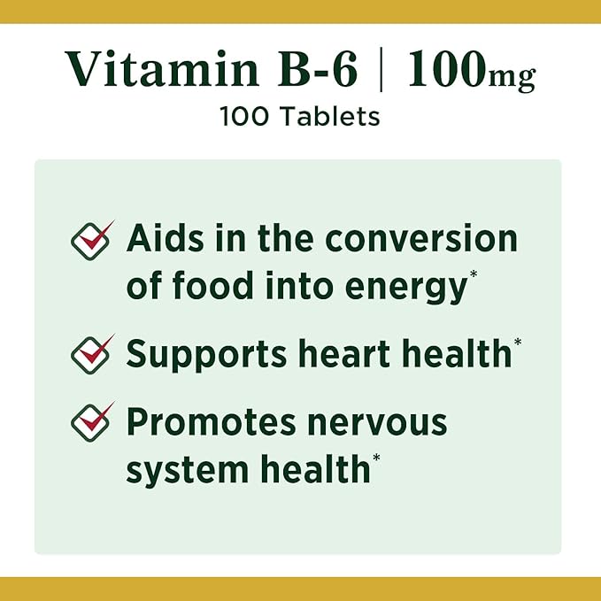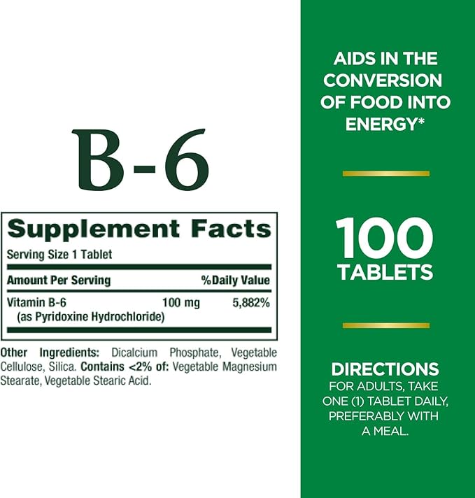 Nature's Bounty Vitamin B6 100mg Tablets - Supports Energy Metabolism & Nervous System Health, 100 Ct
