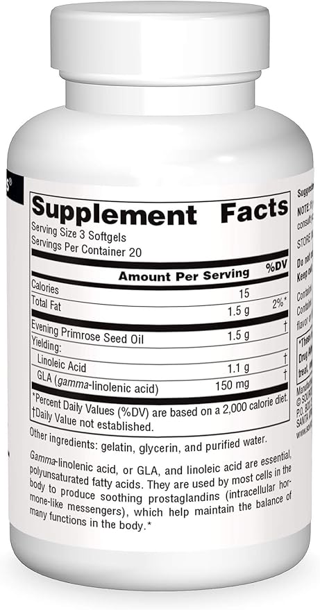 Source Naturals Evening Primrose Oil - Hexane-Free - 500mg - GLA Yield: 50 mg - Cold-Pressed - 60 Softgels