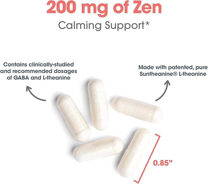 Allergy Research Group 200 mg of Zen - GABA L-Theanine Supplement, Natural Calm, Sleep & Relax Support for Women & Men, Take Day or Night for Relaxation & Calm Energy - 120 Vegetarian Capsules