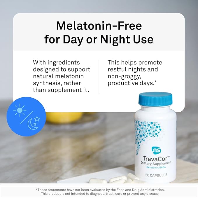 - Peaceful Nights, Productive Days - The B vitamins, L-Theanine and 5-HTP supplements in TravaCor are designed to support natural melatonin synthesis in the body, rather than supplement with melatonin directly. This may help promote restful nights without morning grogginess.*