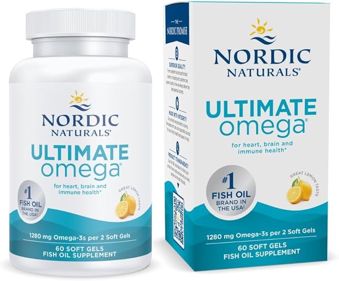 Nordic Naturals Ultimate Omega, Lemon Flavor - 60 Soft Gels - 1280 mg Omega-3 - High-Potency Fish Oil Supplement with EPA & DHA - Promotes Brain & Heart Health - Non-GMO - 30 Servings