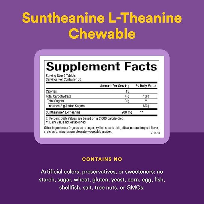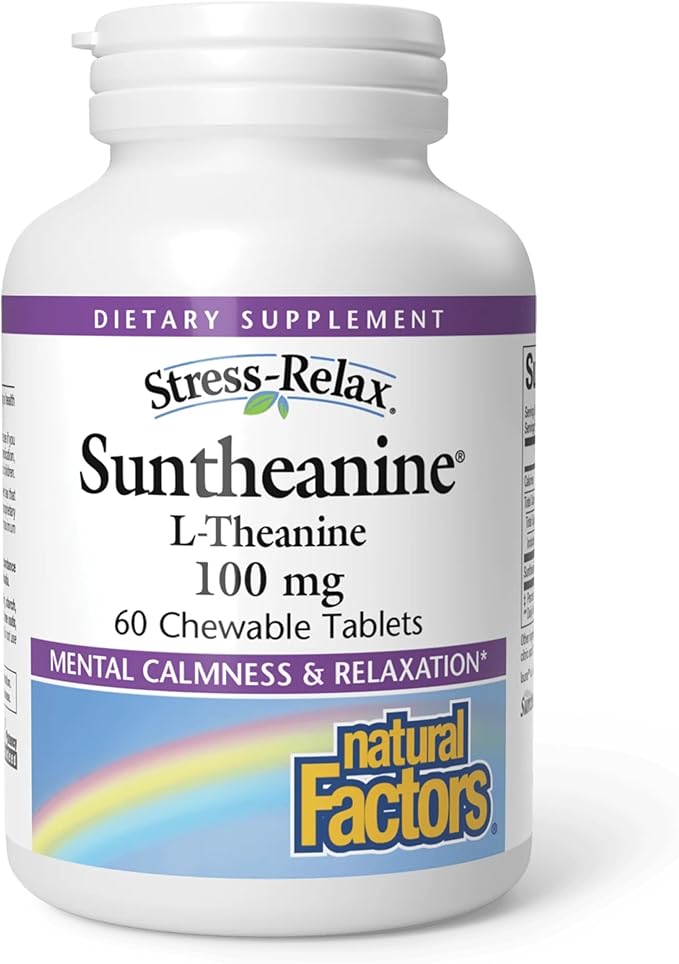 Natural Factors Stress-Relax Chewable Suntheanine L-Theanine 100 mg, Non-Drowsy Stress Support for Mental Calmness and Relaxation, Tropical Fruit Flavor, 60 Tablets
