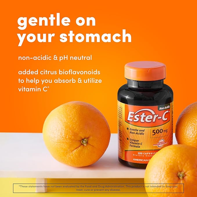 American Health Ester-C with Citrus Bioflavonoids Capsules - Gentle On Stomach, Non-Acidic Vitamin C - 500 mg, 60 Servings, 120 Count