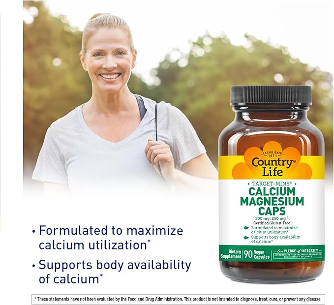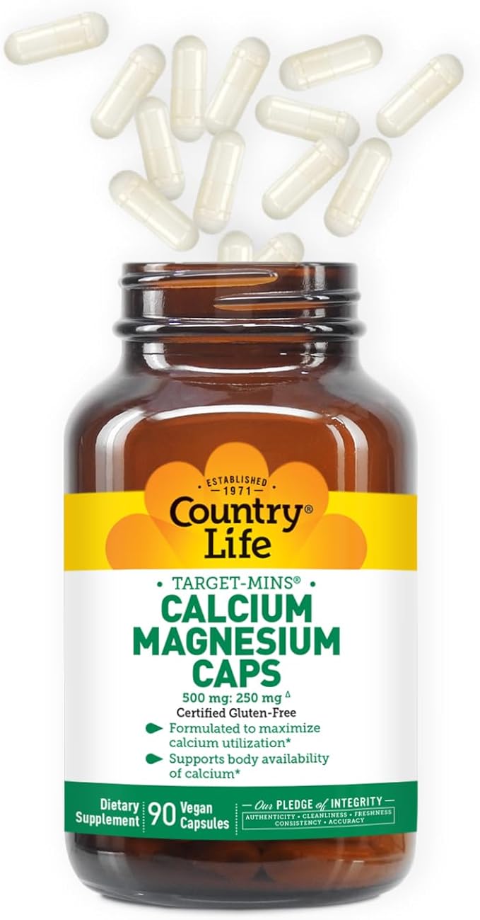 Country Life Target-Mins Calcium Magnesium Complex - 1000mg Calcium, 500mg Magnesium, Gluten-Free Supplement for Bone Health