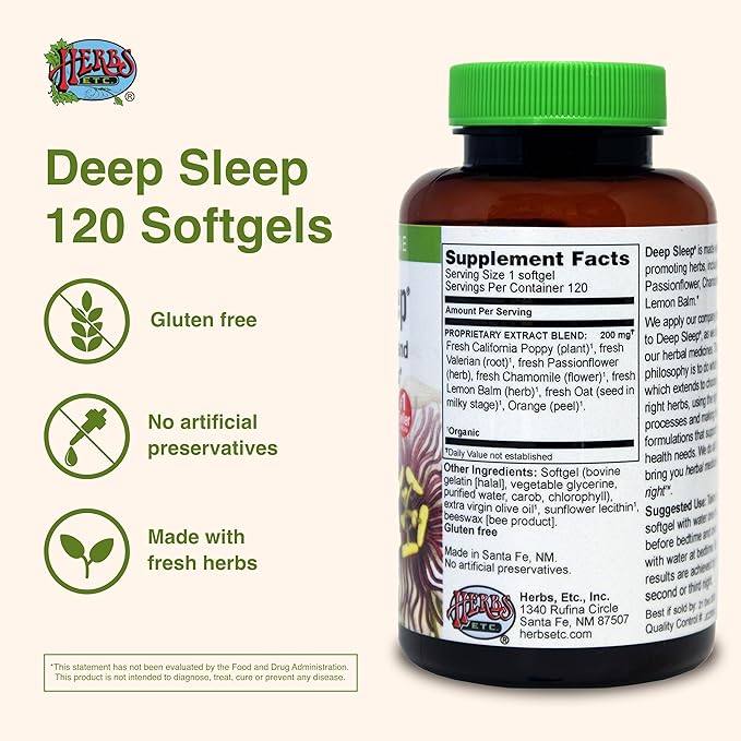 Herbs Etc. Deep Sleep Softgels - Herbal Sleep Support Supplement - Rest & Calming Support with Passionflower, Chamomile & Lemon Balm - 120 Softgels (120 Servings)