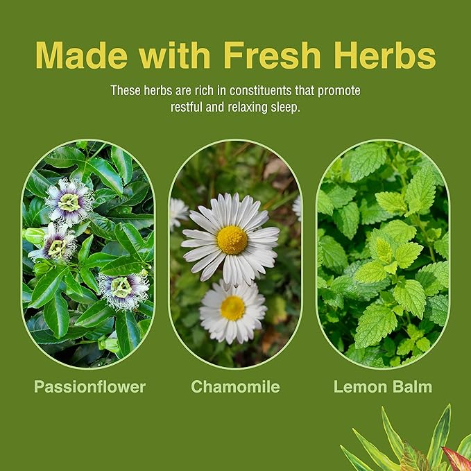- Supplement Made from Fresh Herbs: This sleep supplement contains fresh (never dried) herbs that are rich in constituents that support restful and relaxing sleep