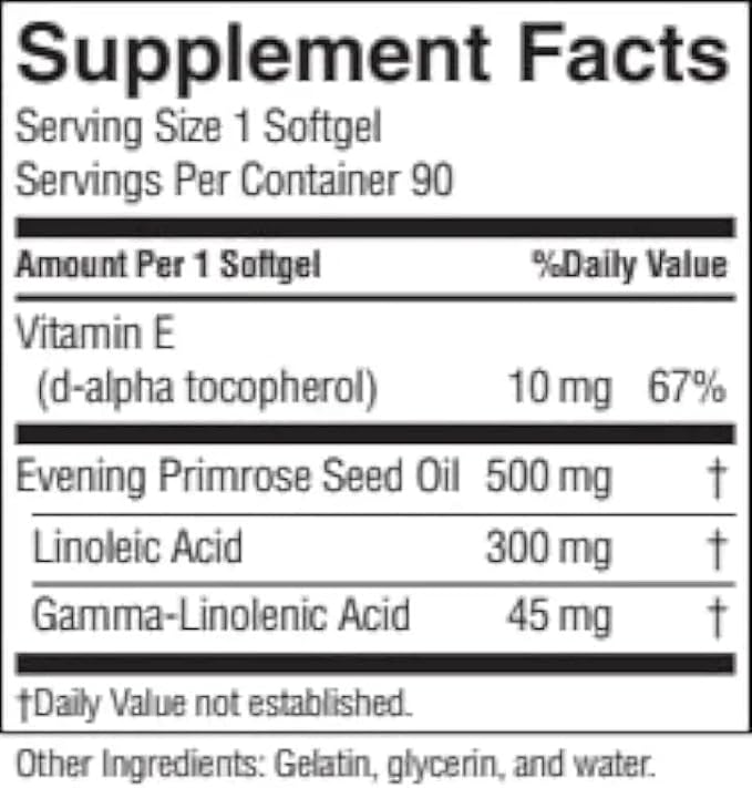 - All Natural Ingredients - Contains evening primrose oil and 15 IU vitamin E which is 50% of the recommended daily value.