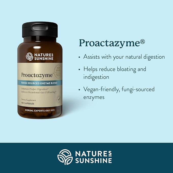 - Plant-Sourced Enzymes -Proactazyme is a unique, general-purpose, food-enzyme supplement in a digestion-enhancing herbal base.