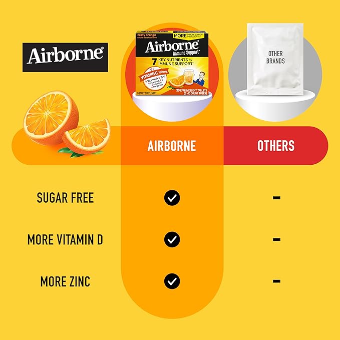 - VITAMIN C 1000mg: Airborne immune support effervescent tablets are packed with 1000mg Vitamin C per serving, which helps support your immune system.