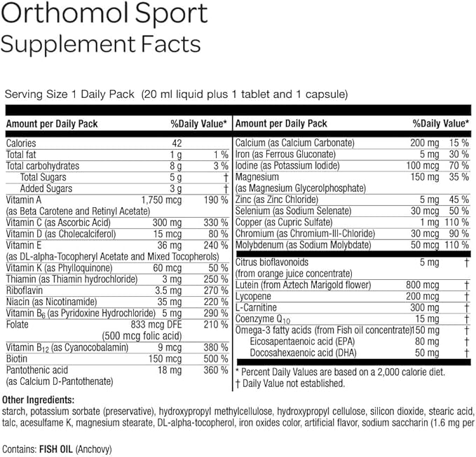 Orthomol Sport, 30-Day Supply, Premium Sports Nutrition Supplement with Vitamins A, B, C, D, E, Zinc, Iodine, Coenzyme Q10, L-Carnitine, Omega-3, and Essential Minerals for Optimal Performance