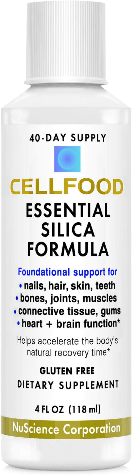 Cellfood Essential Silica Anti-Aging Formula, 4 fl oz - Supports Healthy Bones, Joints, Hair, Skin, Nails, Teeth & Gums - Easy to Absorb Liquid - Gluten Free, Thiaminase Free, Non-GMO - 40-Day Supply