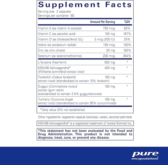 Pure Encapsulations Thyroid Support Complex - Supports Thyroid Health* - Antioxidant Infusion - with Ashwagandha & Iodine - Non-GMO & Vegetarian - 120 Capsules