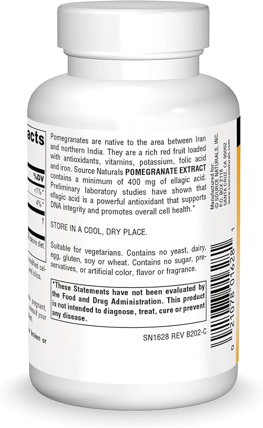 Source Naturals Pomegranate Extract 500mg Complete Whole Fruit Ellagic Acid Antioxidant & Added Fiber - 120 Tablets