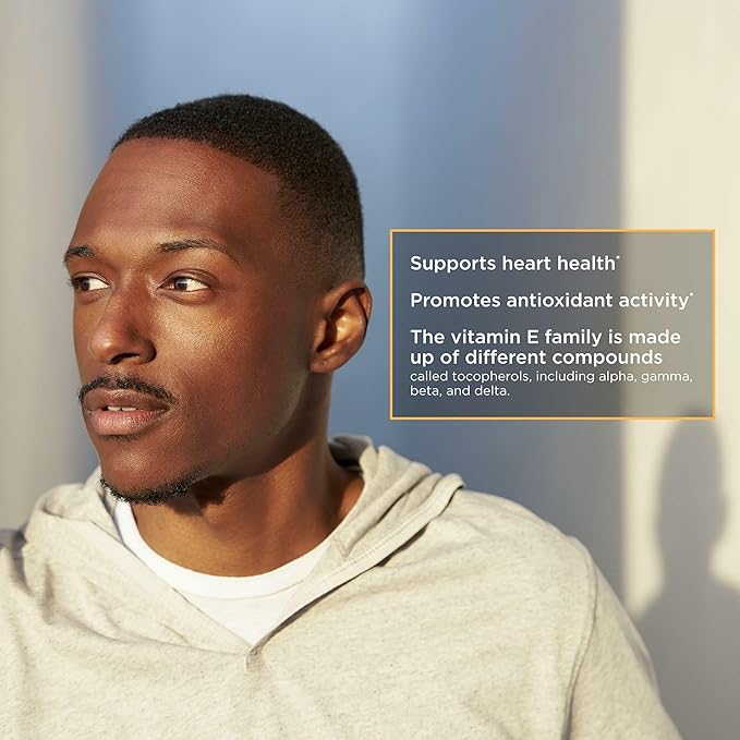 - Vitamin E Supplement with Tocopherols: The vitamin E family is made up of different compounds called tocopherols, including alpha, gamma, beta, and delta*