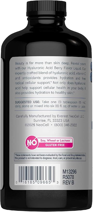 NeoCell Hyaluronic Acid Liquid with Vitamin C, Berry, 16 Fl Oz (Pack of 1) - Packaging May Vary