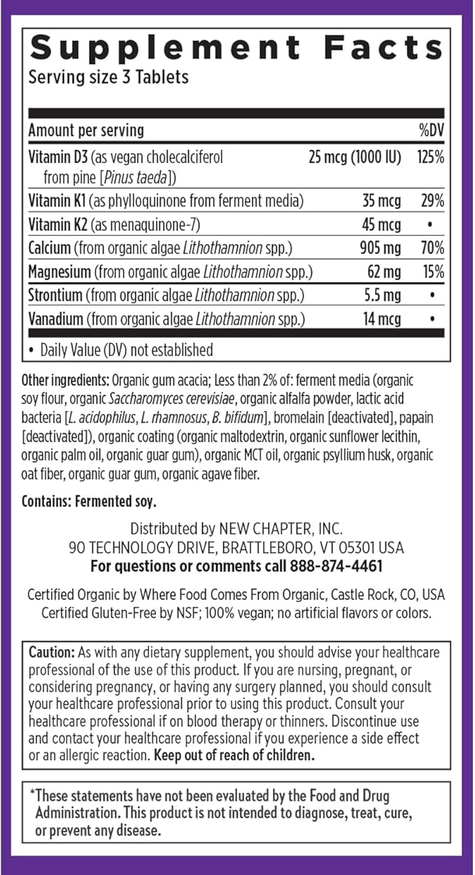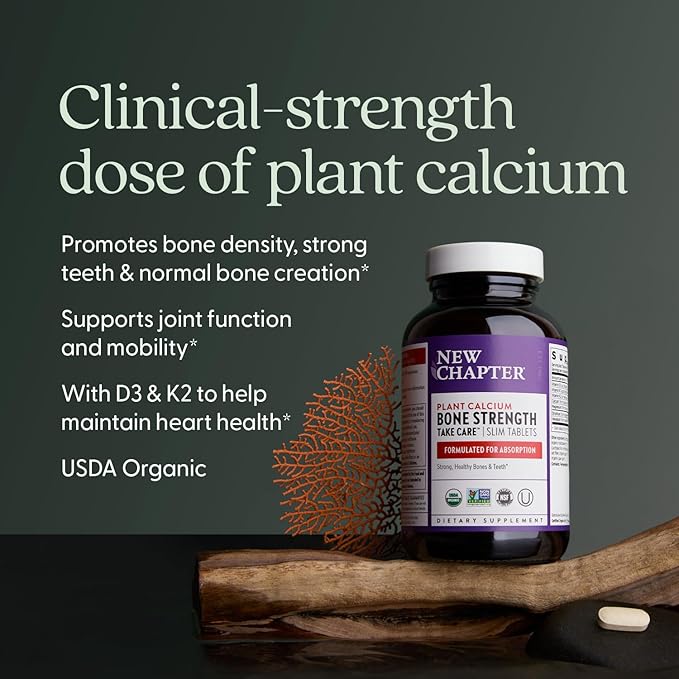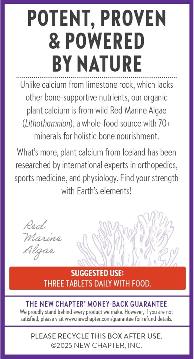 New Chapter Calcium Supplement - Bone Strength Organic Calcium with Magnesium, Vitamin D3+K2, 70+ Trace Minerals for Bone Health, Gluten Free, Easy to Swallow Slim Tablets - 60 Count