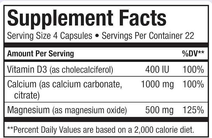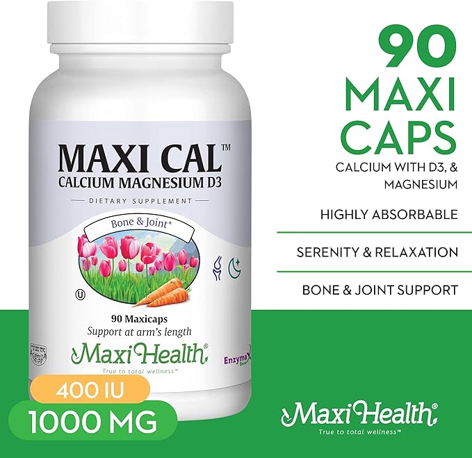Maxi Health Calcium 1000 mg Supplement with Vitamin D3 (1000 IU) and Magnesium (500 mg) - Bone, Teeth and Joint Support for Men and Women - 90 Capsules