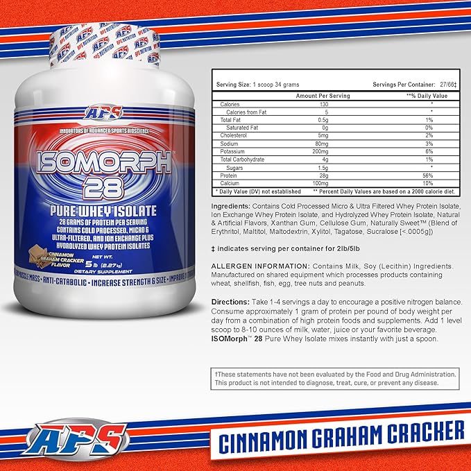 APS Nutrition Isomorph 28 Protein Powder | Pure Whey Isolate | Cold Pressed, Ultra- Filtered, & Ion Exchange Isolates | 28g Protein | 5 Pound (Cinnamon Graham Cracker)