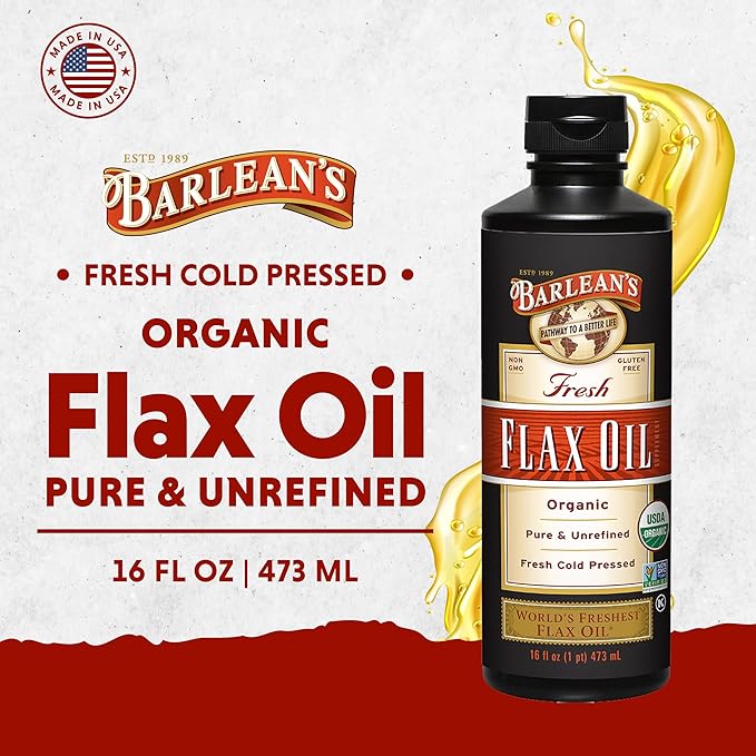 - PURE, ORGANIC AND UNREFINED: Barlean's organic flax oil is cold pressed without the use of heat or solvents. Each drop is protected from damaging heat and light from seed to bottle, offering a potent and healthy balance of Omegas 3, 6, and 9 and a pleasant and mild nutty flavor