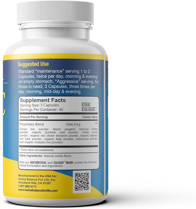 Natural Essiac Tea 8 Herb Capsules, 1066.5 mg per Serving - 120 Capsules, with Sheep Sorel Roots, More Potent 8-herb Essiac Tea Formula by Nurse Rene Caisse & Dr. Charles Brusch in The 1950s