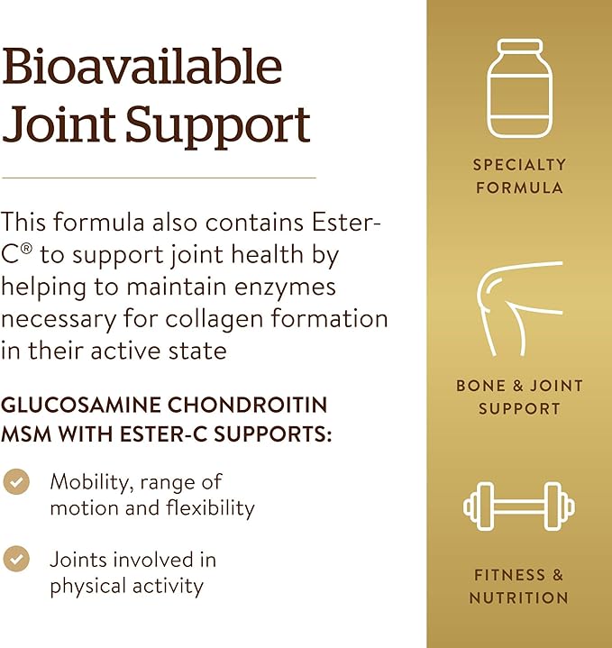 - Supports Healthy Joints; Extra Strength Glucosamine Chondroitin MSM is ideal for those seeking extra nutritional support for cartilage & joints; Contains Ester-C to support joint health by helping to maintain enzymes necessary for collagen formation