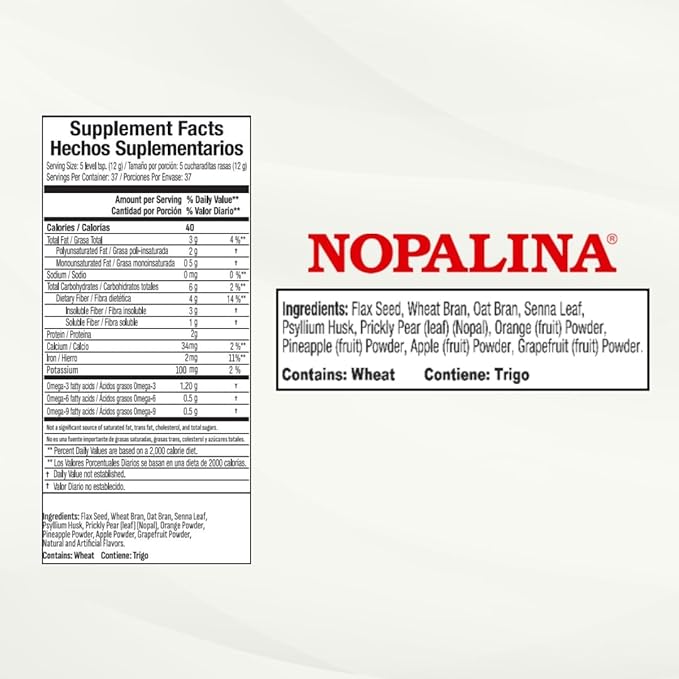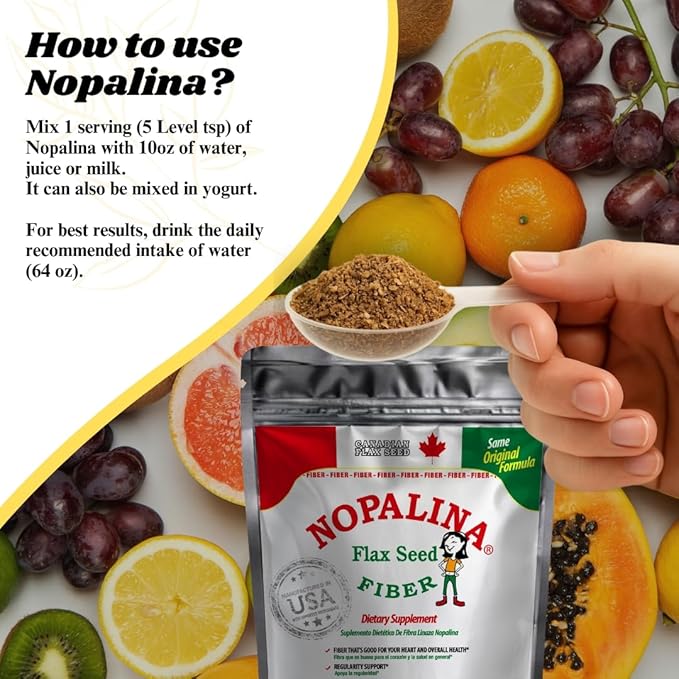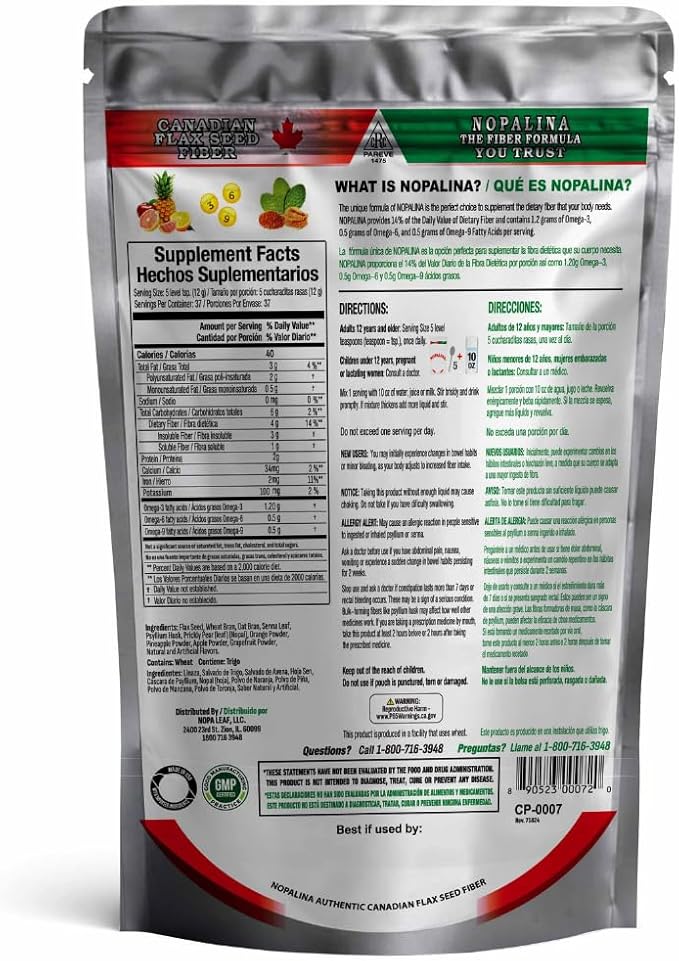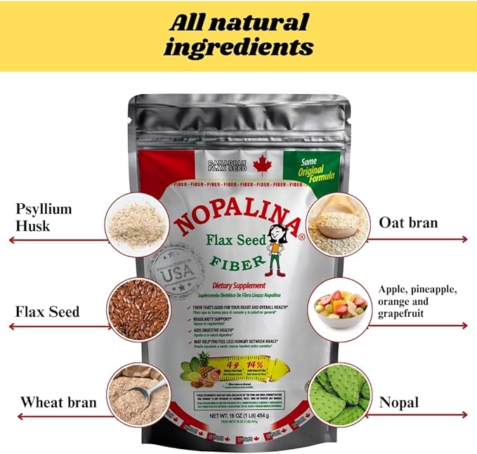 Nopalina Fiber Formula | 1 Lb Bag | 30 Servings | Flax Seed, Psyllium, Oat and Wheat Bran, Omega 3, 6 & 9 | Can Help with Regularity & More | The Original
