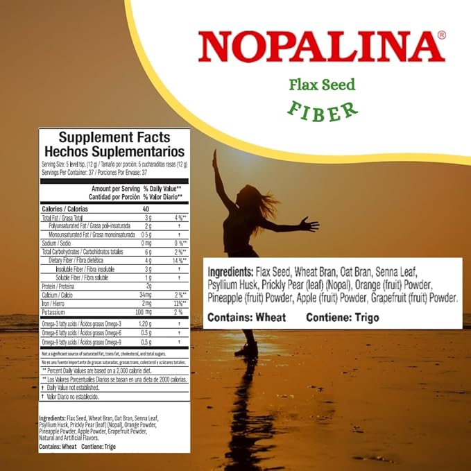 - Made with 100% natural ingredients, including flaxseed, psyllium husk, and edible cactus (nopal).