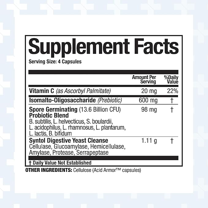 - 3-in-1 formula: 1 serving contains 13.6 billion CFUs of probiotics, a prebiotic fiber to nourish and stimulate the probiotics and a candida-fighting enzyme blend