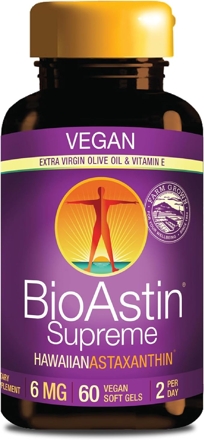 Nutrex Hawaii BioAstin Supreme Hawaiian Astaxanthin - 6mg, 60 Softgels - Farm-Direct Premium Antioxidant Supplement for Eye, Skin, Joint & Immune System Health* - Blended with Extra Virgin Olive Oil