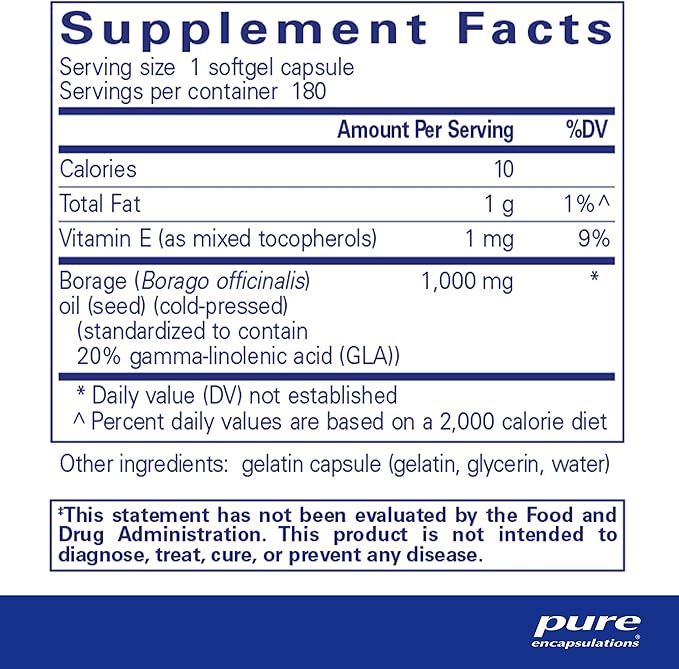 Pure Encapsulations Borage Oil | Hypoallergenic Dietary Supplement | 180 Softgel Capsules