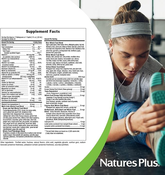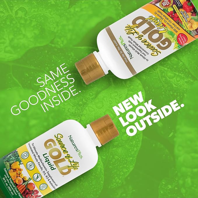Natures Plus Source of Life Gold Multivitamin Liquid - 30 oz - with Vitamins D3, B12 & K2 - Blood, Bone & Immune Support - Vegetarian & Gluten Free - 30 Servings