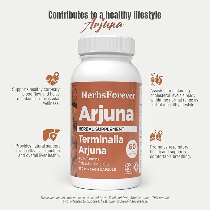 Arjuna Terminalia Arjuna Traditional Wellness Supplement 60 Vege Capsules