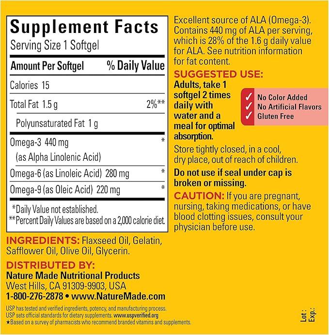 Nature Made Triple Omega 3 6 9 Supplements, Flaxseed, Safflower & Olive Oils, Fish Free Omega 3 Fatty Acid Supplement, 150 Softgels, 75 Day Supply