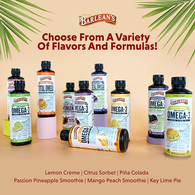 - TASTE THE FRUIT, NOT THE FISH: Yummy fruity flavored fish oil with a creamy smoothie texture that both kids and adults love is the secret behind Barlean's Omega 3 fish oil liquid. Our omega supplement features a smooth and delectable Lemon Crème flavor, 1080 mg of EPA/DHA essential fatty acids per serving and no artificial flavors, colors or sweeteners. Our fish oil is dairy free, sugar free and non-GMO