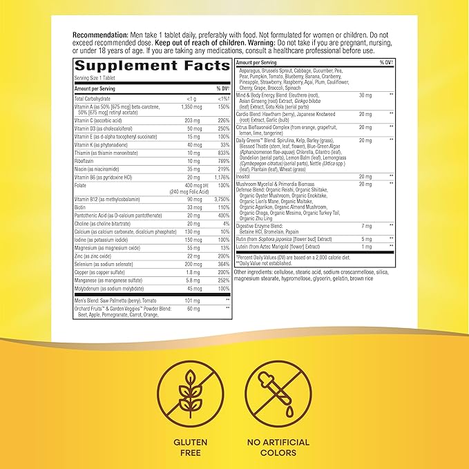 - Gluten-free. No artificial colors. Multivitamin for men 50+