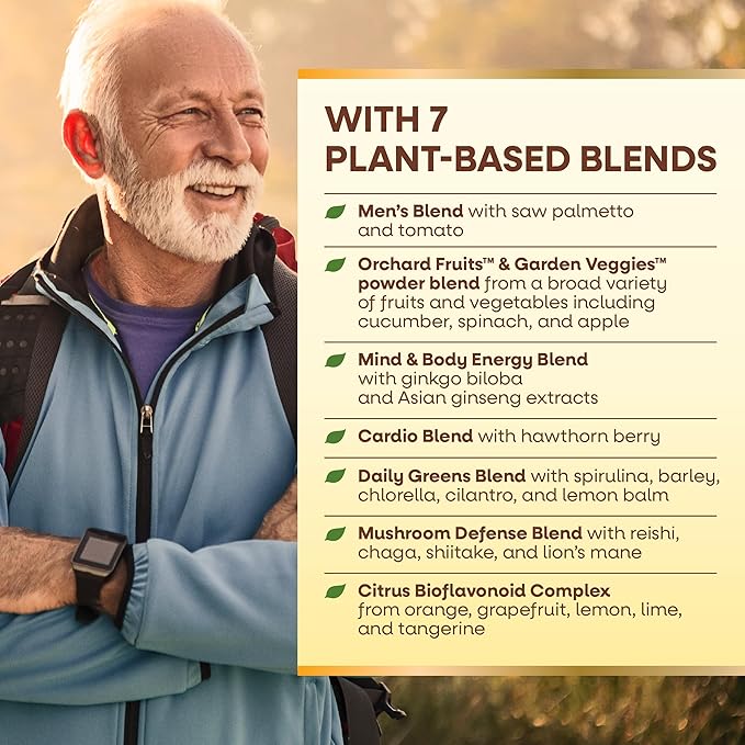 - With 7 plant-based blends including a Mind & Body Energy Blend with Ginkgo Biloba, Cardio Blend with Hawthorn Berry, Daily Greens Blend with Spirulina, Chlorella and Barley, Mushroom Defense Blend as well as a Digestive Enzyme Blend with Bromelain