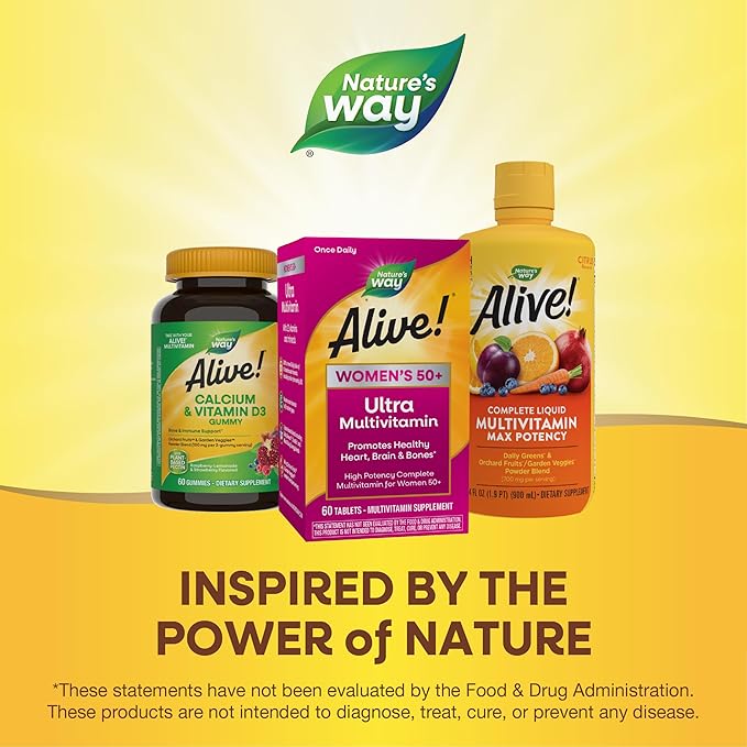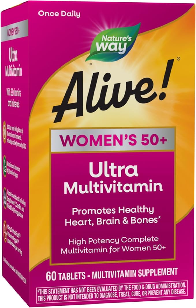 - Nature’s Way Alive! Women’s 50+ Ultra Multivitamin supports heart, brain function, bone health, immune system and eye function, plus energy metabolism; a great women's 50+ multivitamin option*