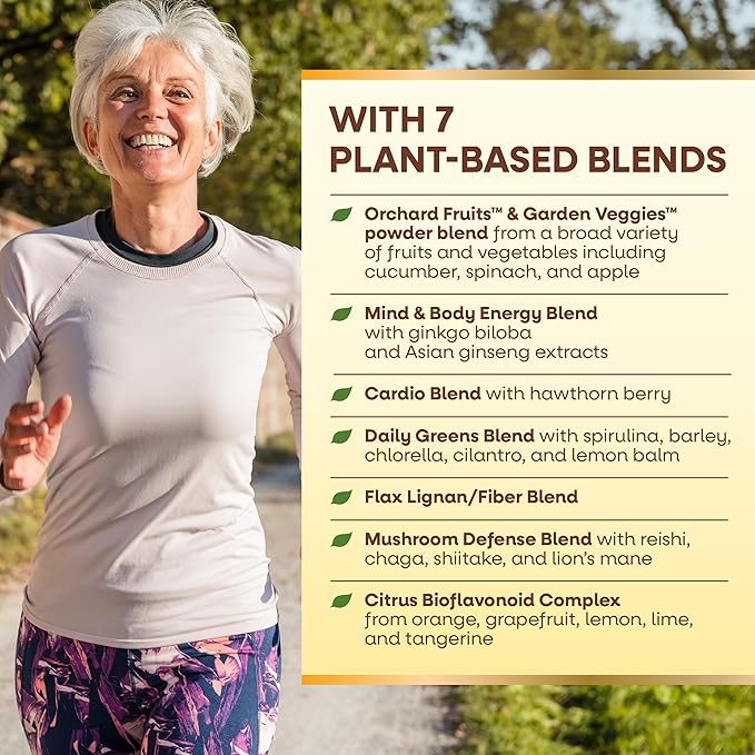 - With 7 plant-based blends including a Mind & Body Energy Blend with Ginkgo Biloba, Cardio Blend with Hawthorn Berry, Daily Greens Blend with Spirulina, Chlorella and Barley, Mushroom Defense Blend as well as a Digestive Enzyme Blend with Bromelain