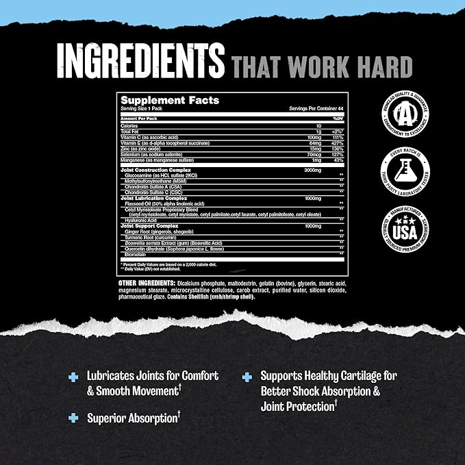 - Proven and Powerful Formula: Harness the power of a trusted blend of Glucosamine, Chondroitin, and MSM. Collagen promotes healthy tissues, Flaxseed and Hyaluronic Acid ensure lubrication, while Turmeric and Ginger aid in rehabilitation