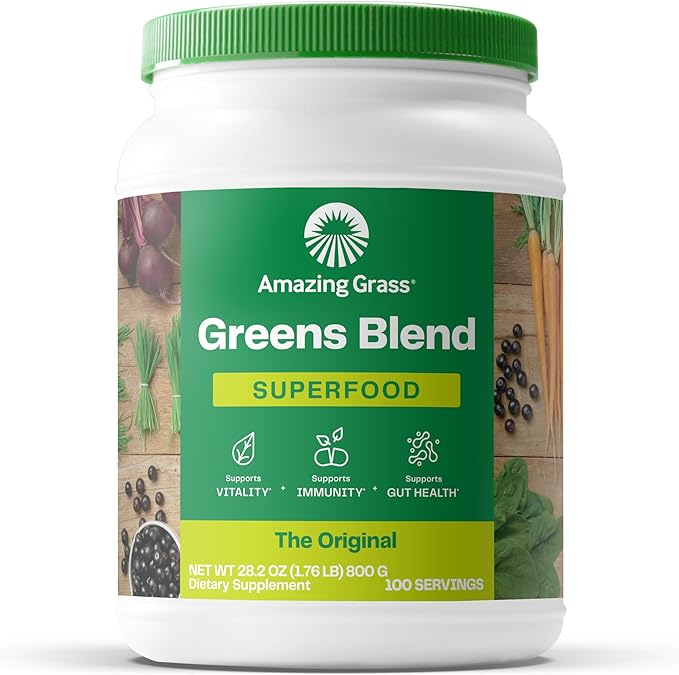 Amazing Grass Greens Blend Superfood: Super Greens Powder with Spirulina, Alfalfa, Beet Root Powder, Digestive Enzymes, Prebiotics & Probiotics, Original, 100 Servings (Packaging May Vary)