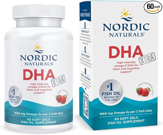 Nordic Naturals DHA Xtra, Strawberry - 60 Soft Gels - 1660 mg Omega-3 - High-Intensity DHA Formula for Brain & Nervous System Support - Non-GMO - 30 Servings