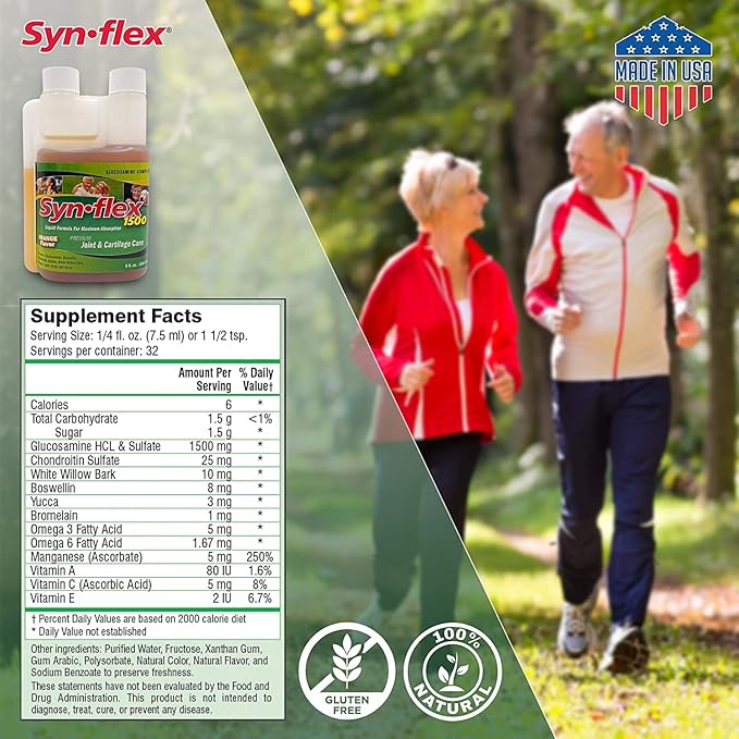 1500mg Liquid Glucosamine & Chondroitin - High Concentration Fast-Absorbing Formula Orange Flavor Helps Support Joint & Cartilage Health - with White Willow Bark, Manganese & Boswellin (32 Day Supply)