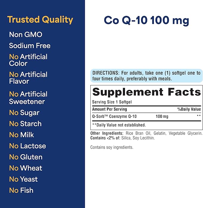 Puritan's Pride Q-Sorb CoQ-10 100mg | Supports Heart Health | Dietary Supplement | Healthy Supplement | Energy Supplement | Gluten Free | 240 Rapid Release Softgels